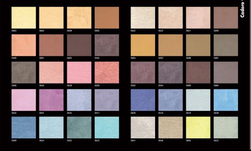 Cadoro velvet колеруется в различные оттенки на основе базы Argento (Серебро), а также имеет отдельную базу Bianco (Белая) для получения максимально белого оттенка покрытия.