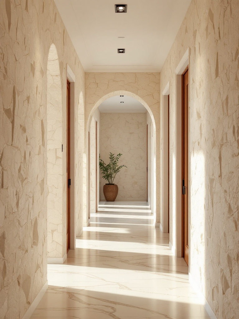 Выбирая декоративную штукатурку как материал для отделки стен мы получаем ряд преимуществ , которые дают возможность более точного и индивидуального подбора цвета и фактуры той декоративной штукатурки , которая будет нанесена на стены. Сама фактура, обьем и вид рисунка, подбираются под общий дизайн . Цвет так же можно выбрать по желанию. В зависимости от типа помещения, где будет использоваться декоративная штукатурка, подбирается тип и цвет декоративной штукатурки. Например, коридор. Коридор в жилом помещении это место с наиболее интенсивным режимом эксплуатации. Так же как правило, коридоры и прихожие имеют наименьшую освещенность естественным светом. Поэтому, наиболее подходящие по свойствам для коридора это моющиеся декоративные штукатурки, которые не боятся влажной уборки и долго сохраняют прекрасный внешний вид. Хорошо подходят для коридора декоративные штукатурки Sagredo (Сагредо),Marcopolo(Маркополо),Cavenier (Кавеньер), Muratore (Мураторе) и многие другие. Стойкость к загрязнениям и легкость применения влажной уборки – основные преимущества декоративной штукатурки для коридоров. Кроме того, при наличии домашних питомцев, хорошо подойдут материалы с повышенной стойкостью к механическим повреждениям.
