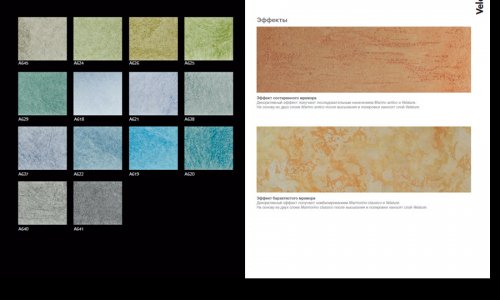 Декоративное акрил-силоксановое полимерное покрытие с эффектом под старину. Применяется для декоративной отделки наружных и внутренних поверхностей. Наличие в составе Velature модифицированных силоксановых полимеров придает покрытию отличную воздухопроницаемость, хорошие водоотталкивающие свойства, а так же, при использовании на фасадах зданий, хорошую сопротивляемость атмосферным воздействиям.